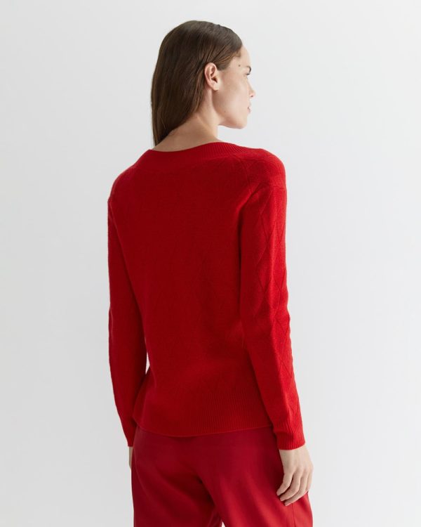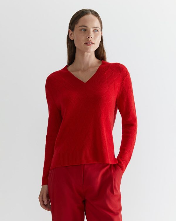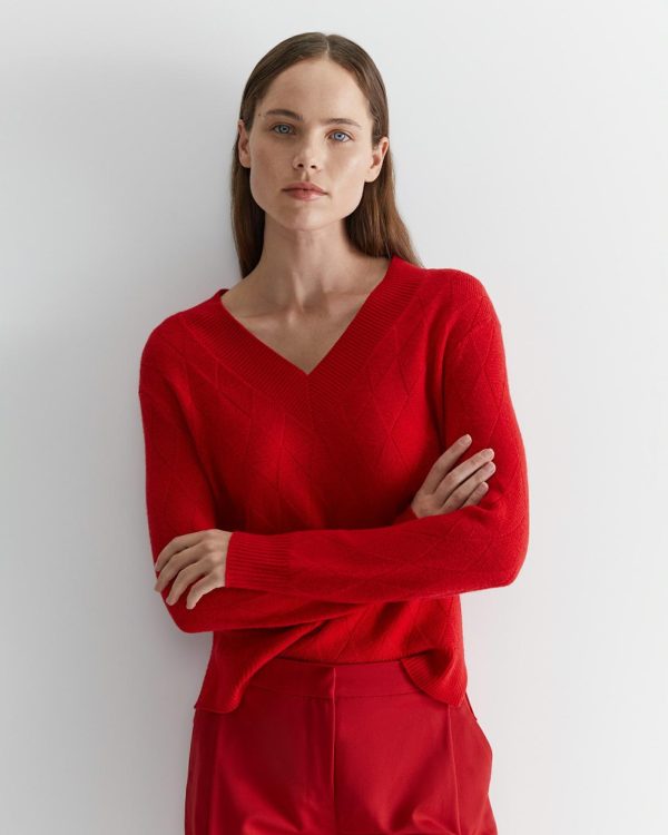 Reach for a classic this winter with the Cass Diamond Cable Sweater. Made from woolmark certified merino wool, this fully fashioned knit has a diamond cable design, a relaxed fit, long sleeves, a v-neckline and ribbed trims. Style it with a pair of mid-wash denim jeans and a collared shirt.
