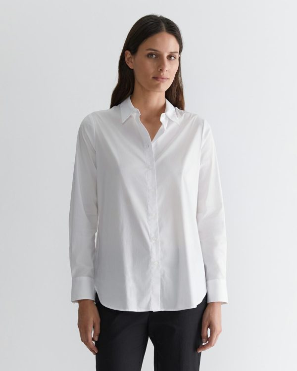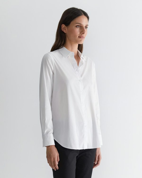 Our Georgina Relaxed Shirt is made from our super soft cotton-nylon in a classic relaxed longline shape. Designed for comfort, it features a narrow collar and a concealed placket for a clean, timeless look.