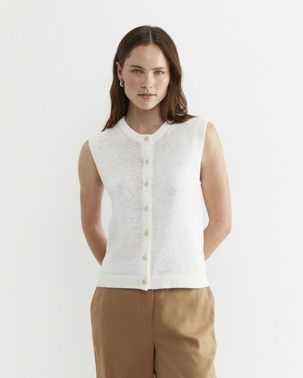 Sportscraft Josie Tape Yarn Vest White | Women Knits & Cardigans
