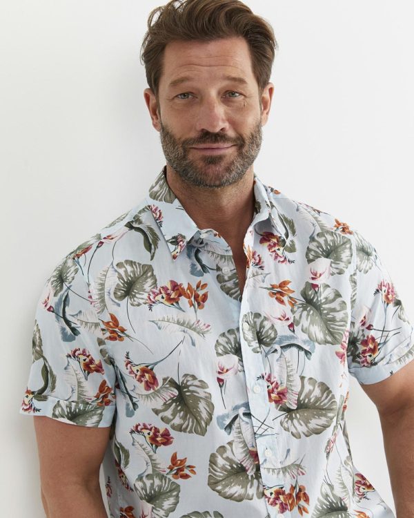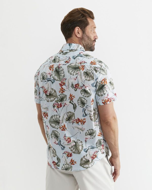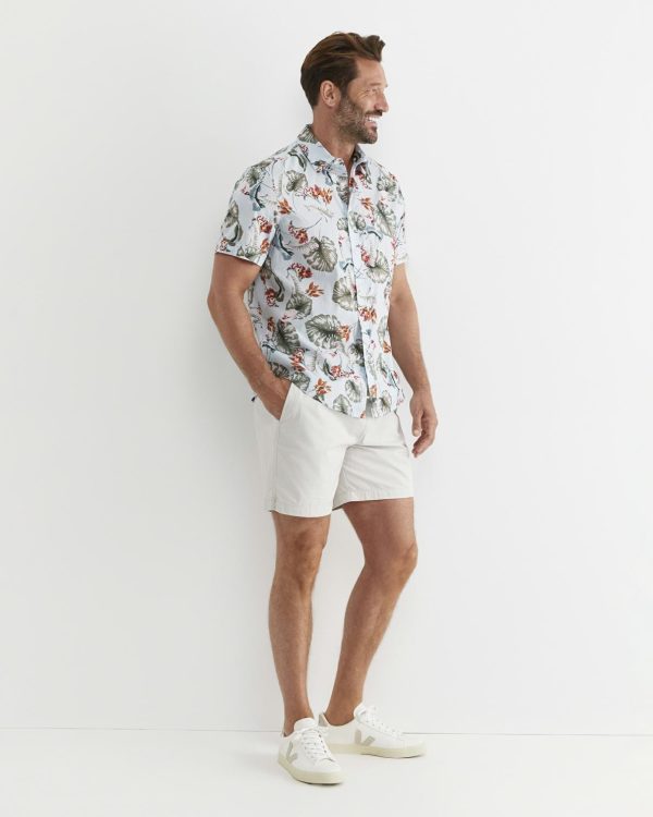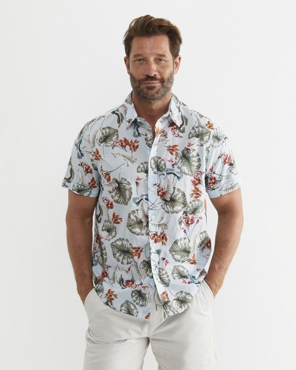 The Percy Shirt has been made from 100% premium cotton. This regular fit shirt has an exclusive in-house print, a soft garment wash, short sleeves, a cuff turn and a functional chest pocket. Wear this shirt with a pair of linen pants for an easy summer outfit.