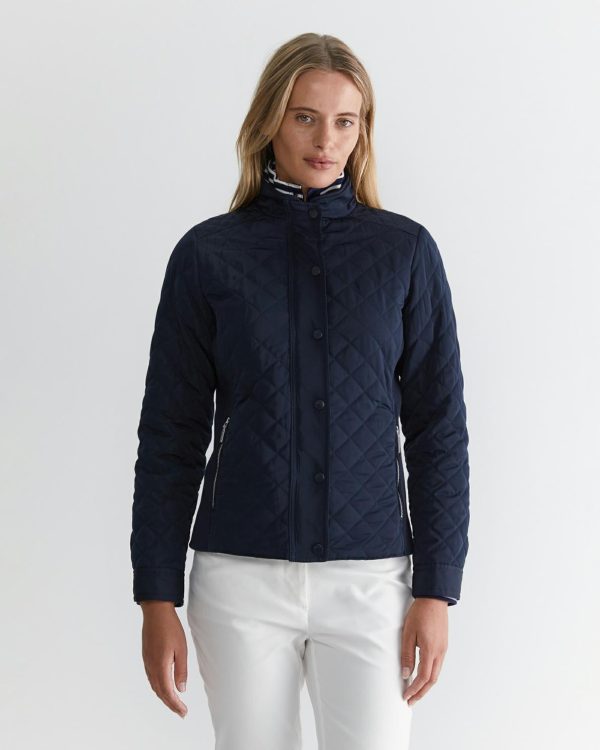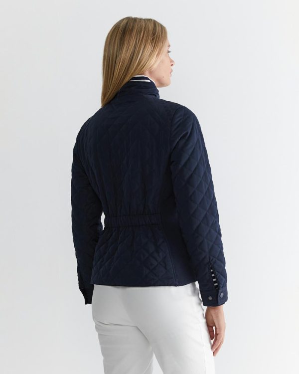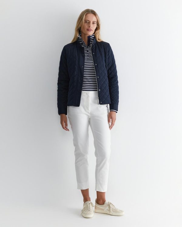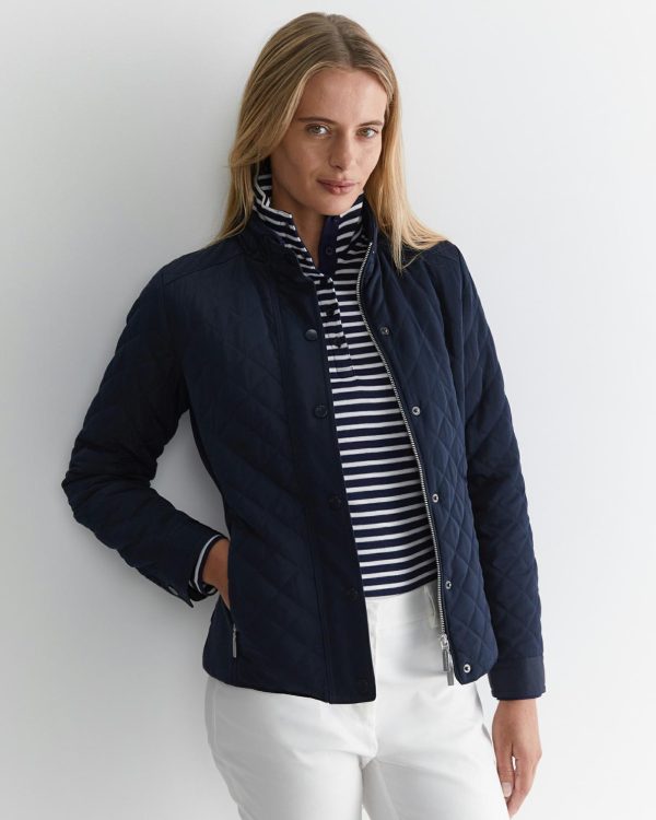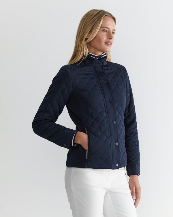 Escape for the weekend in our Vera Quilted Jacket. The perfect balance of style and comfort, she is made from a lightweight shower-proof fabric with soft insulation. Vera features a beautiful quilted design with a concealed snap button placket, small funnel collar and ribbed side panels for ease of movement. Available in navy.